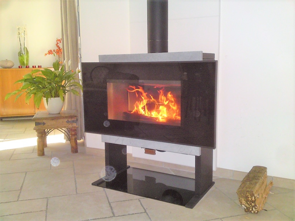 Poêle RIKA SCENA de 10 kW avec un rendement > à 80%. Belle vision de feu pour un moment de douceur....